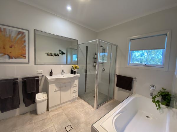 - Bathroom with shower and separate bath. Toiletries.