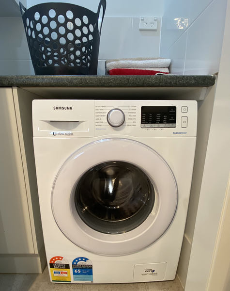 - Laundry with tub and washing machine (laundry powder supplied)
